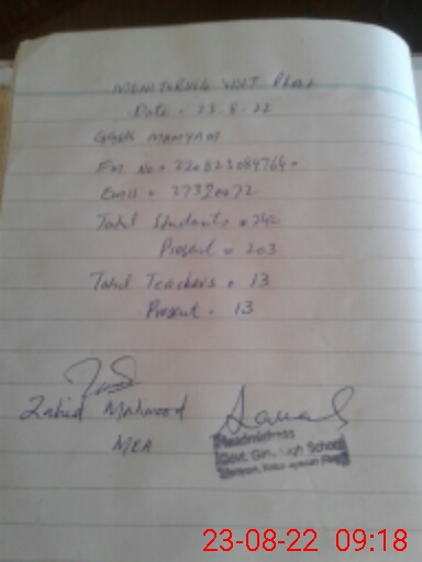 | Monitoring Date: 23-08-2022 | Start Time: 23-08-2022 08:47 AM | End Time: 23-08-2022 09:20 AM | Name of MEA: Za**** Me**** | |