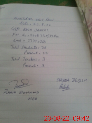 | Monitoring Date: 23-08-2022 | Start Time: 23-08-2022 09:27 AM | End Time: 23-08-2022 09:44 AM | Name of MEA: Za**** Me**** | |