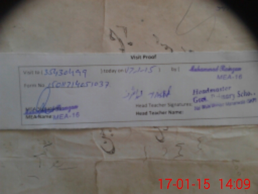 | Attendance Register | Head Teacher | MEA with School | Visit Proof |
