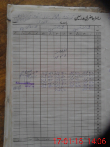 | CNIC | Full Name | Designation | R/C | Absence During Last Calender Month |