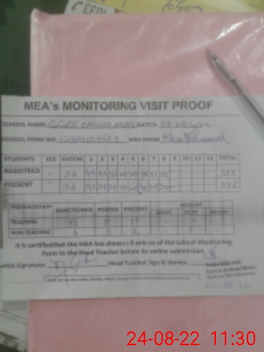 | Attendance Register | Head Teacher | MEA with School | Visit Proof |
