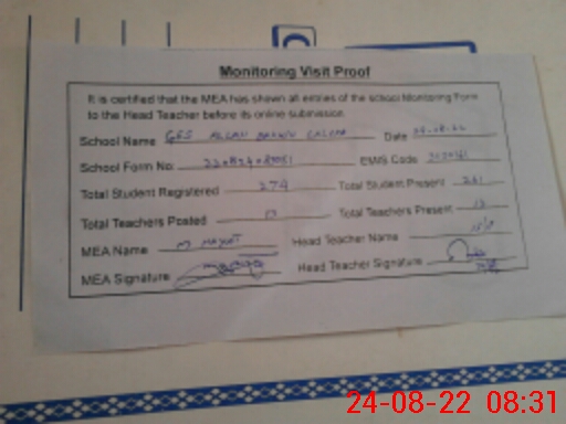 | Certified that this School was Inspected by the Undersigned MEA/DMO Today and the Information Stated Above is as Per Record. | |||||
