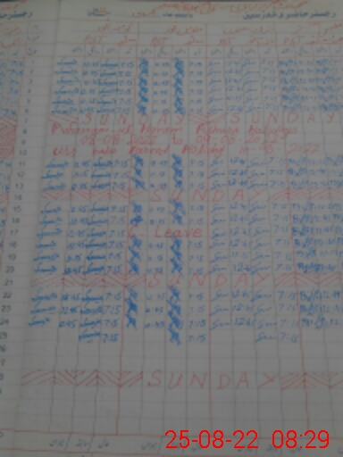 | CNIC | Full Name | Designation | R/C | Absence During Last Calender Month |