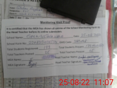 | Certified that this School was Inspected by the Undersigned MEA/DMO Today and the Information Stated Above is as Per Record. | |||||
