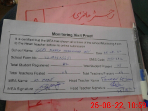 | Certified that this School was Inspected by the Undersigned MEA/DMO Today and the Information Stated Above is as Per Record. | |||||