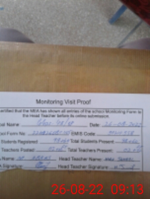| Attendance Register | Head Teacher | MEA with School | Visit Proof |