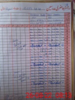 | CNIC | Full Name | Designation | R/C | Absence During Last Calender Month |