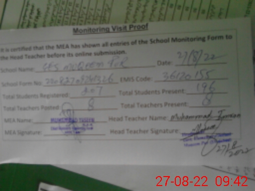 | EMIS Code: 36120155 | Name of School: GES MUQEEM PUR P/O MATOTLI SHUJABAD | |||