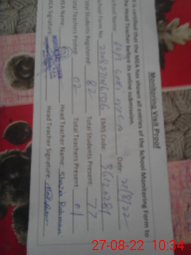 | Certified that this School was Inspected by the Undersigned MEA/DMO Today and the Information Stated Above is as Per Record. | |||||