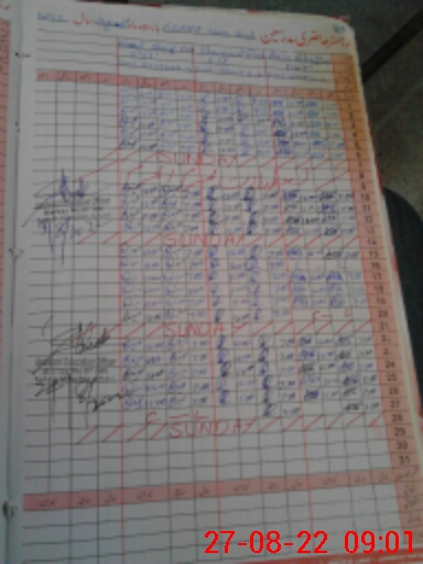 | CNIC | Full Name | Designation | R/C | Absence During Last Calender Month |