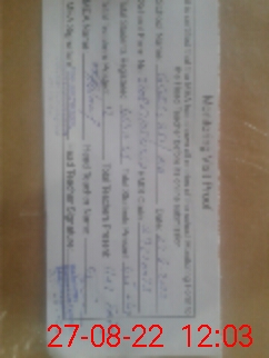 | School Visited by School Health & Nutrition Supervisor (No. of Visits) | 1 | Name1: | AYESHA AKHTAR | Name2: | Nil |