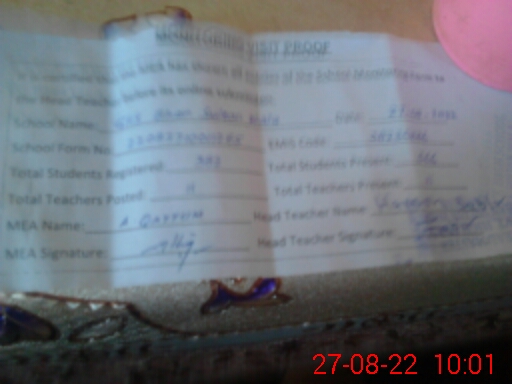 | Name: HA**** SA**** Designation: (School Headmaster's/Headmistress's) SSE PHY Phone/Cell Number: 03**** |