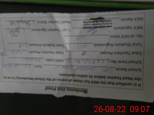 | Certified that this School was Inspected by the Undersigned MEA/DMO Today and the Information Stated Above is as Per Record. | |||||