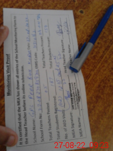 | EMIS Code: 31310162 | Name of School: GPS PEER BUX KORAI (After Noon) | |||