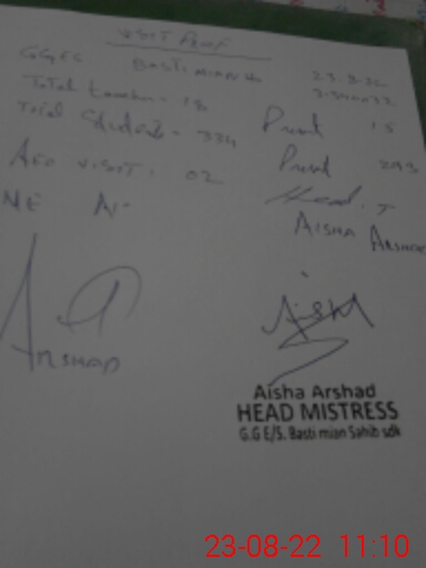 | EMIS Code: 31340072 | Name of School: GGES BASTI MIAN SAHIB | |||