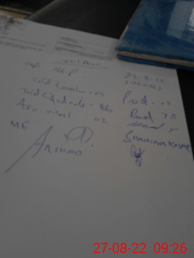 | Monitoring Date: 27-08-2022 | Start Time: 27-08-2022 09:17 AM | End Time: 27-08-2022 09:33 AM | Name of MEA: Ar**** Na**** | |