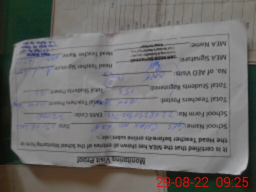 | Attendance Register | Head Teacher | MEA with School | Visit Proof |