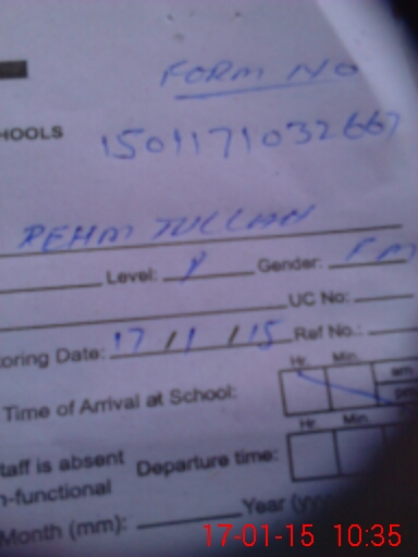 | Name: Sa**** Wa**** Designation: (School Headmaster's/Headmistress's) PST Phone/Cell Number: 03**** |