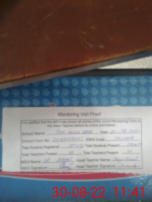 | Certified that this School was Inspected by the Undersigned MEA/DMO Today and the Information Stated Above is as Per Record. | |||||