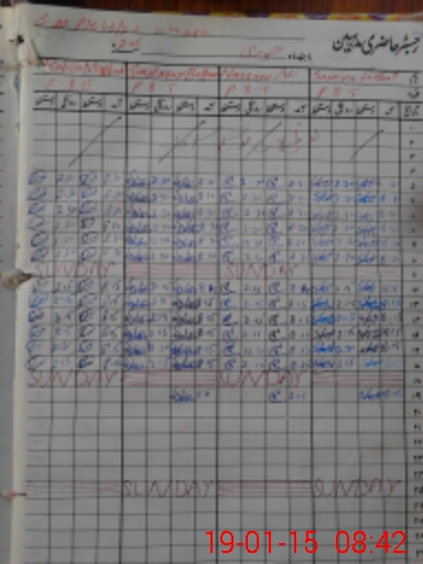 | CNIC | Full Name | Designation | R/C | Absence During Last Calender Month |