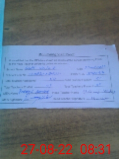 | Monitoring Date: 27-08-2022 | Start Time: 27-08-2022 08:18 AM | End Time: 27-08-2022 08:32 AM | Name of MEA: Pe**** Ak**** BN**** 12 | |
