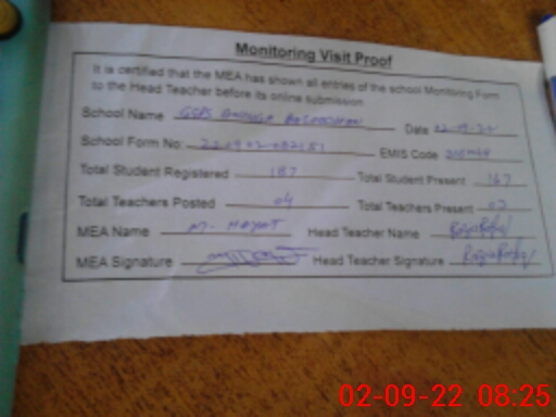 | Certified that this School was Inspected by the Undersigned MEA/DMO Today and the Information Stated Above is as Per Record. | |||||
