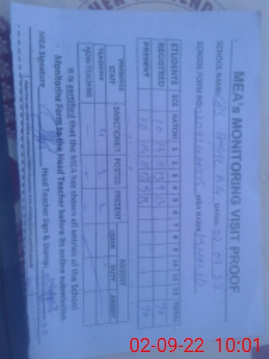 | Certified that this School was Inspected by the Undersigned MEA/DMO Today and the Information Stated Above is as Per Record. | |||||