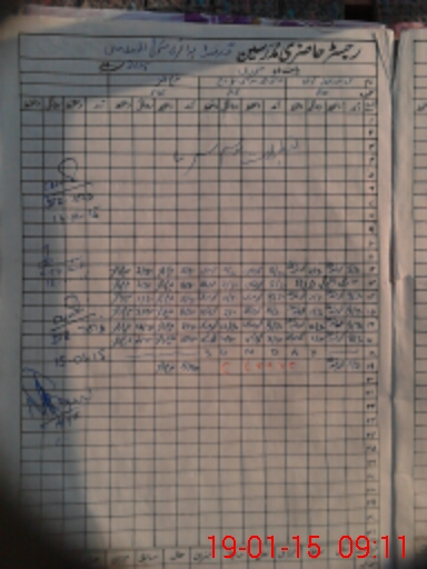 | CNIC | Full Name | Designation | R/C | Absence During Last Calender Month |