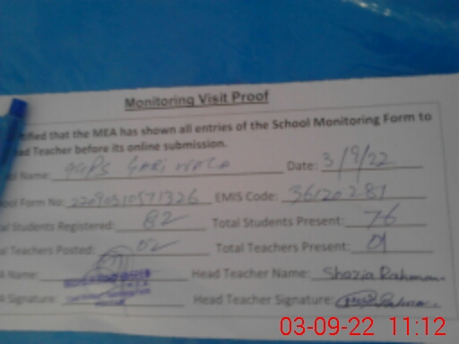 | EMIS Code: 36120281 | Name of School: GGPS GARI WALA SHUJABAD | |||
