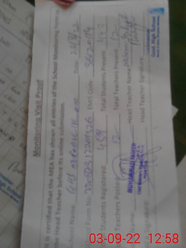 | Certified that this School was Inspected by the Undersigned MEA/DMO Today and the Information Stated Above is as Per Record. | |||||