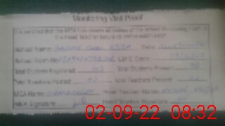 | Attendance Register | Head Teacher | MEA with School | Visit Proof |