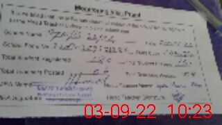 | Total no. of Classrooms: 6 No. of Classrooms Used for Teaching: 6 No. of Classrooms Storing Old Furniture, FTBs, etc: 0Comments if Any: ONE TOILE IS LOCKED AND NSB RECORD NOT SHOWN TO MEA |