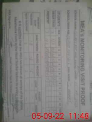 | Certified that this School was Inspected by the Undersigned MEA/DMO Today and the Information Stated Above is as Per Record. | |||||