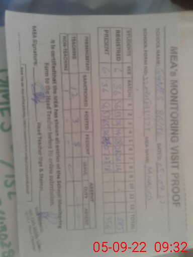 | Attendance Register | Head Teacher | MEA with School | Visit Proof |