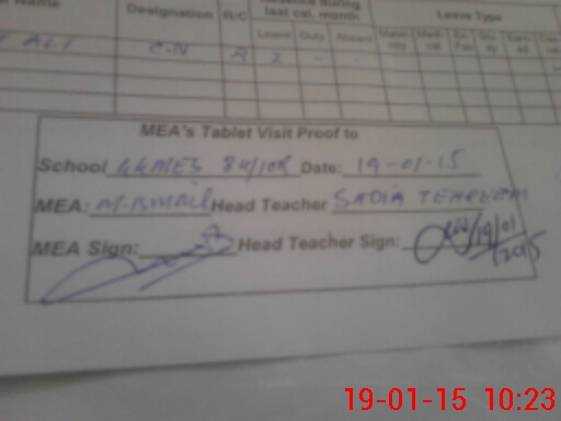 | Attendance Register | Head Teacher | MEA with School | Visit Proof |