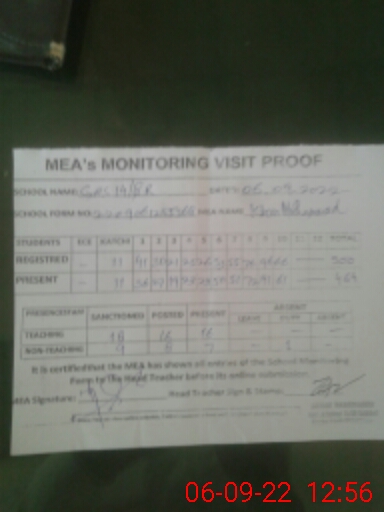 | Certified that this School was Inspected by the Undersigned MEA/DMO Today and the Information Stated Above is as Per Record. | |||||
