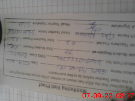 | Attendance Register | Head Teacher | MEA with School | Visit Proof |