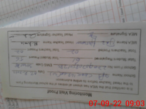 | Certified that this School was Inspected by the Undersigned MEA/DMO Today and the Information Stated Above is as Per Record. | |||||