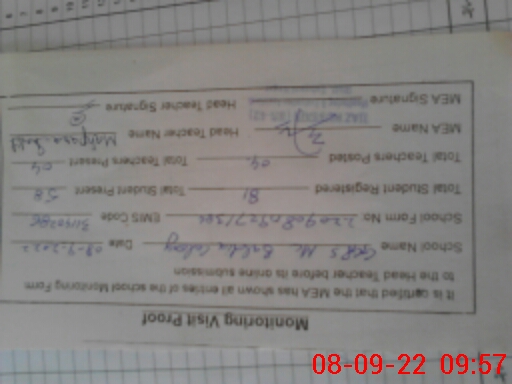 | Certified that this School was Inspected by the Undersigned MEA/DMO Today and the Information Stated Above is as Per Record. | |||||