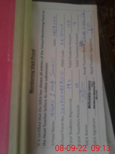 | Attendance Register | Head Teacher | MEA with School | Visit Proof |