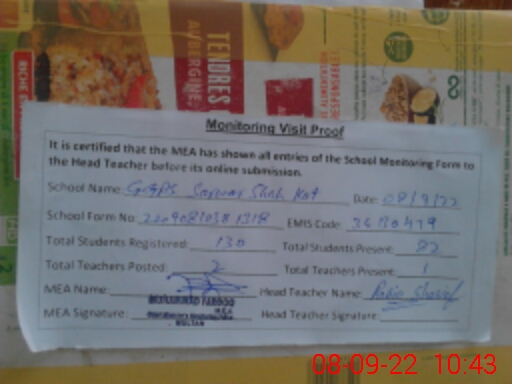 | EMIS Code: 36130479 | Name of School: GGPS SARWAR SHAH KOT | |||