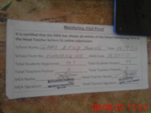 | EMIS Code: 36130517 | Name of School: GMPS 1 FAIZ SHUMALI P/O LAR | |||