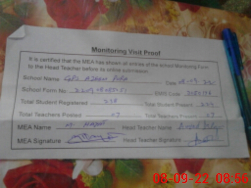 | EMIS Code: 31150176 | Name of School: GPS AZEEM PURA | |||