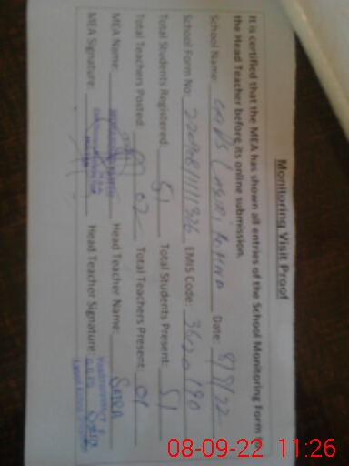 | Attendance Register | Head Teacher | MEA with School | Visit Proof |