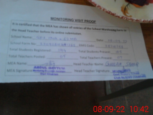 | Name: GH**** SH**** Designation: (School Headmaster's/Headmistress's) PST Phone/Cell Number: 03**** |