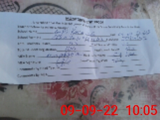 | Name: TA**** AB**** Designation: (School Headmaster's/Headmistress's) PST Phone/Cell Number: 03**** |