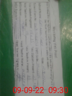 | School Visited by School Health & Nutrition Supervisor (No. of Visits) | Name1: | SAMINA KOSAR | Name2: | Nil | |