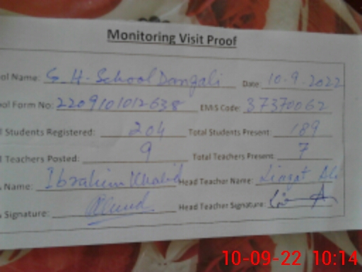| EMIS Code: 37370062 | Name of School: GHS DANGALI | |||
