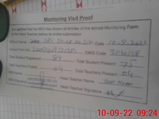 | Certified that this School was Inspected by the Undersigned MEA/DMO Today and the Information Stated Above is as Per Record. | |||||