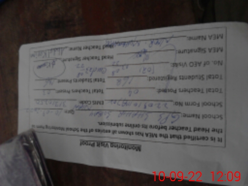 | Certified that this School was Inspected by the Undersigned MEA/DMO Today and the Information Stated Above is as Per Record. | |||||